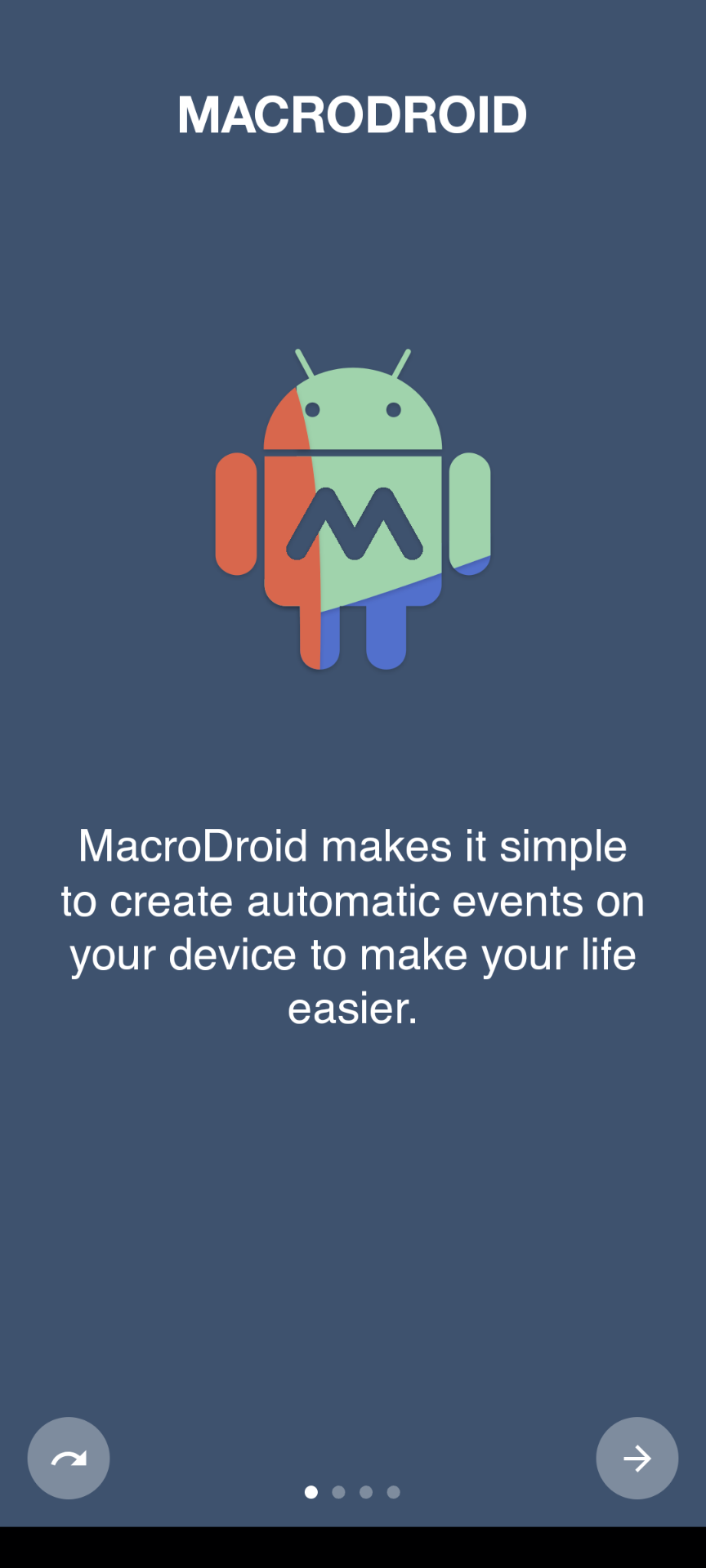 This is the welcome screen if you are launching it for the first time. The welcome screen explains what MacroDroid does and also explains the three most important fundamental concepts of the whole automation process. MacroDroid makes life easier or simpler by offering automation capabilities.