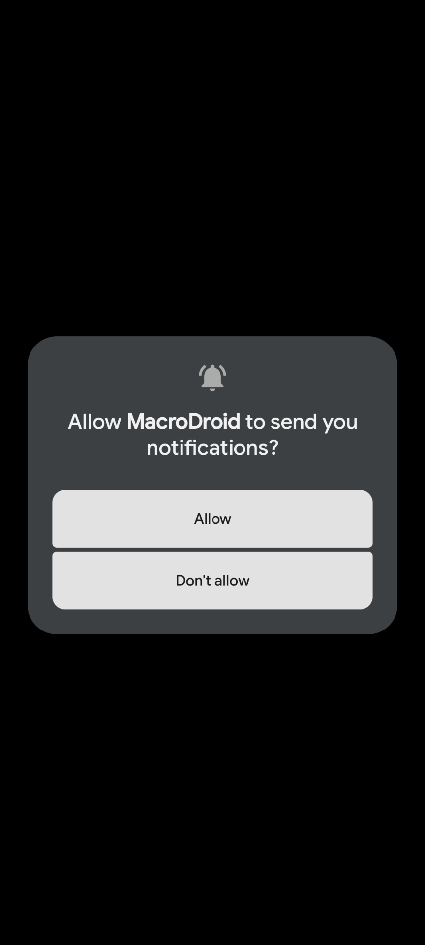 If you are launching MacroDroid for the first time, it will ask for some permissions. One is to be able to send you notifications, so please allow it because it will be useful in the future.