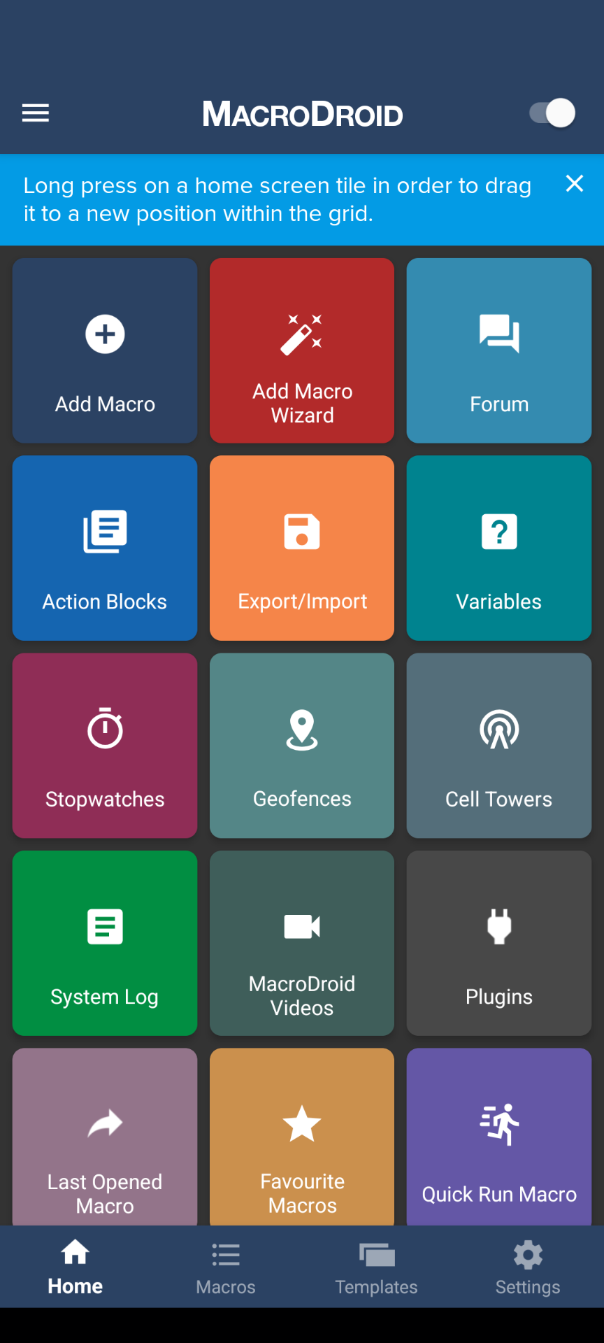 Once the little switch is turned on, we can go back to the MacroDroid application.