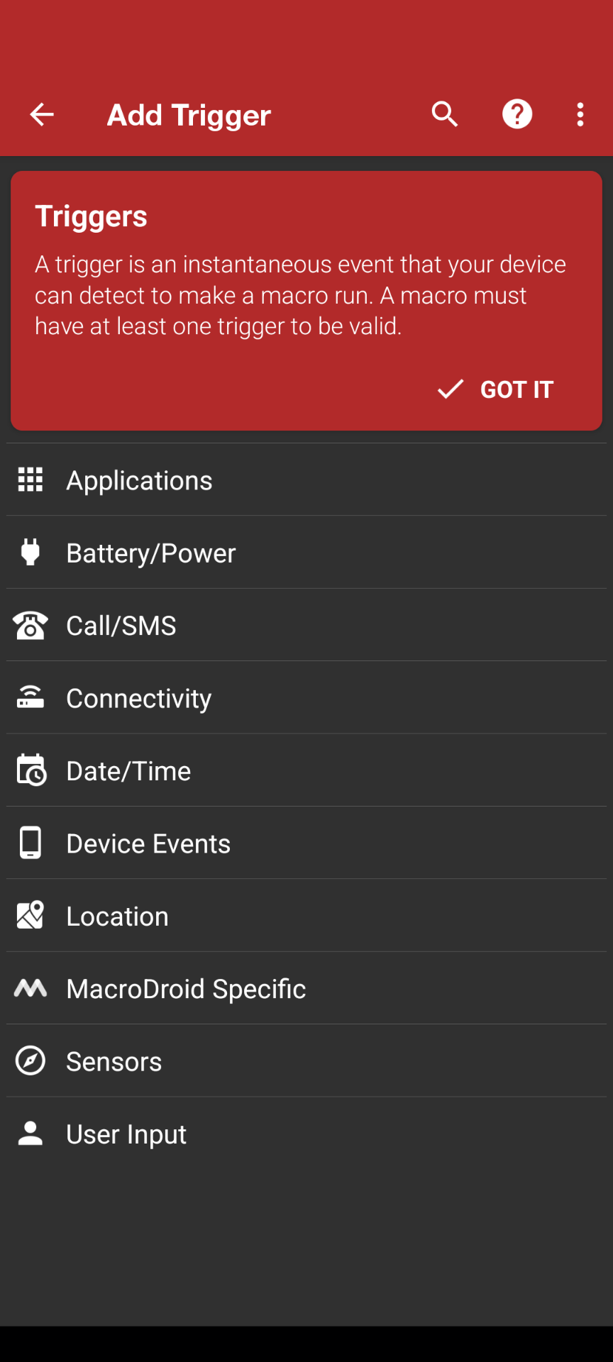 The very first concept it explains is a trigger, which is essentially an event that occurs on your mobile device, and MacroDroid is able to detect this event.