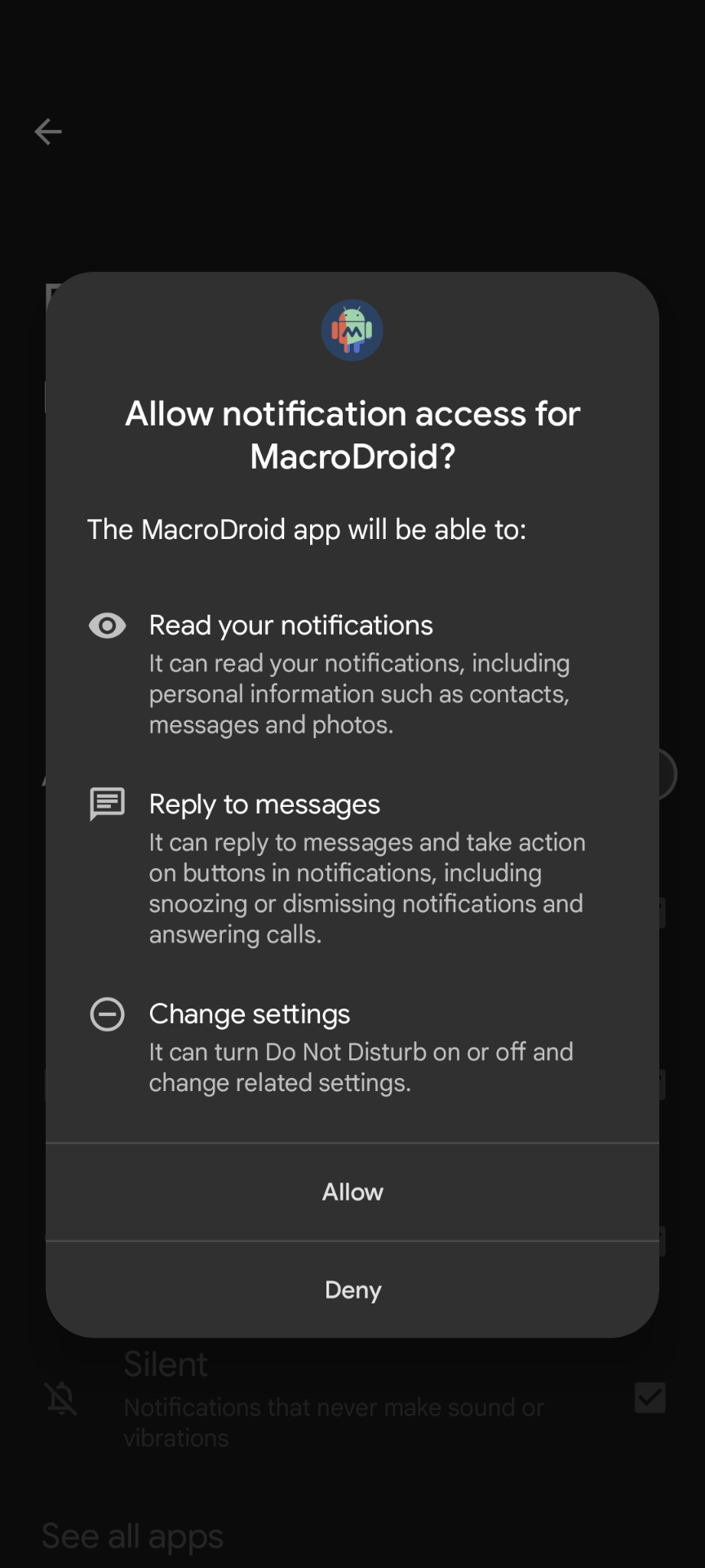 Yes, MacroDroid requires access to notifications, so we have to accept it.