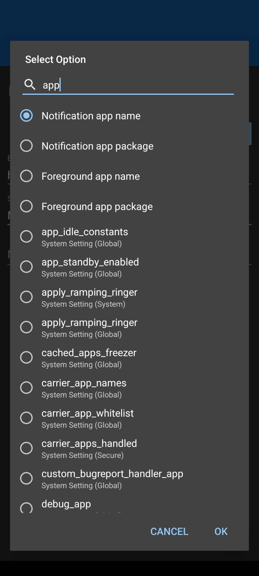 We are going to use the name of the application that we selected in a smart way. Please hit those horizontal three dots and search for "app."