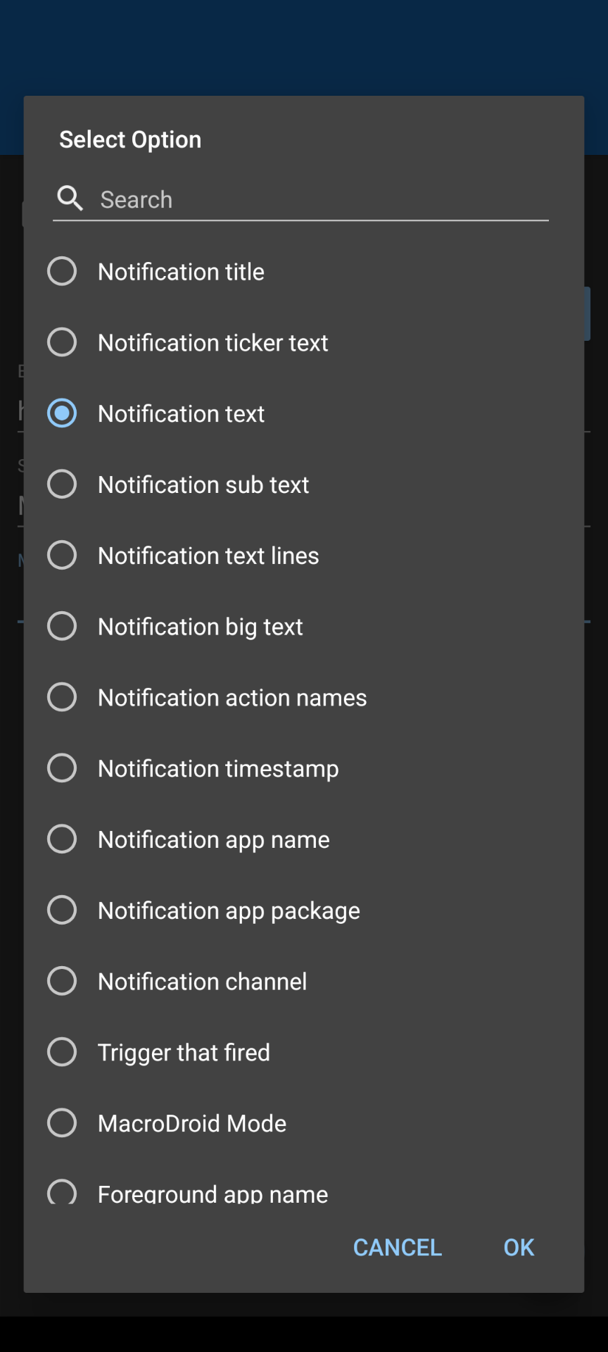Then, the most important step is to hit the horizontal three dots again and search for "notification text," which is going to be the body of the notification.