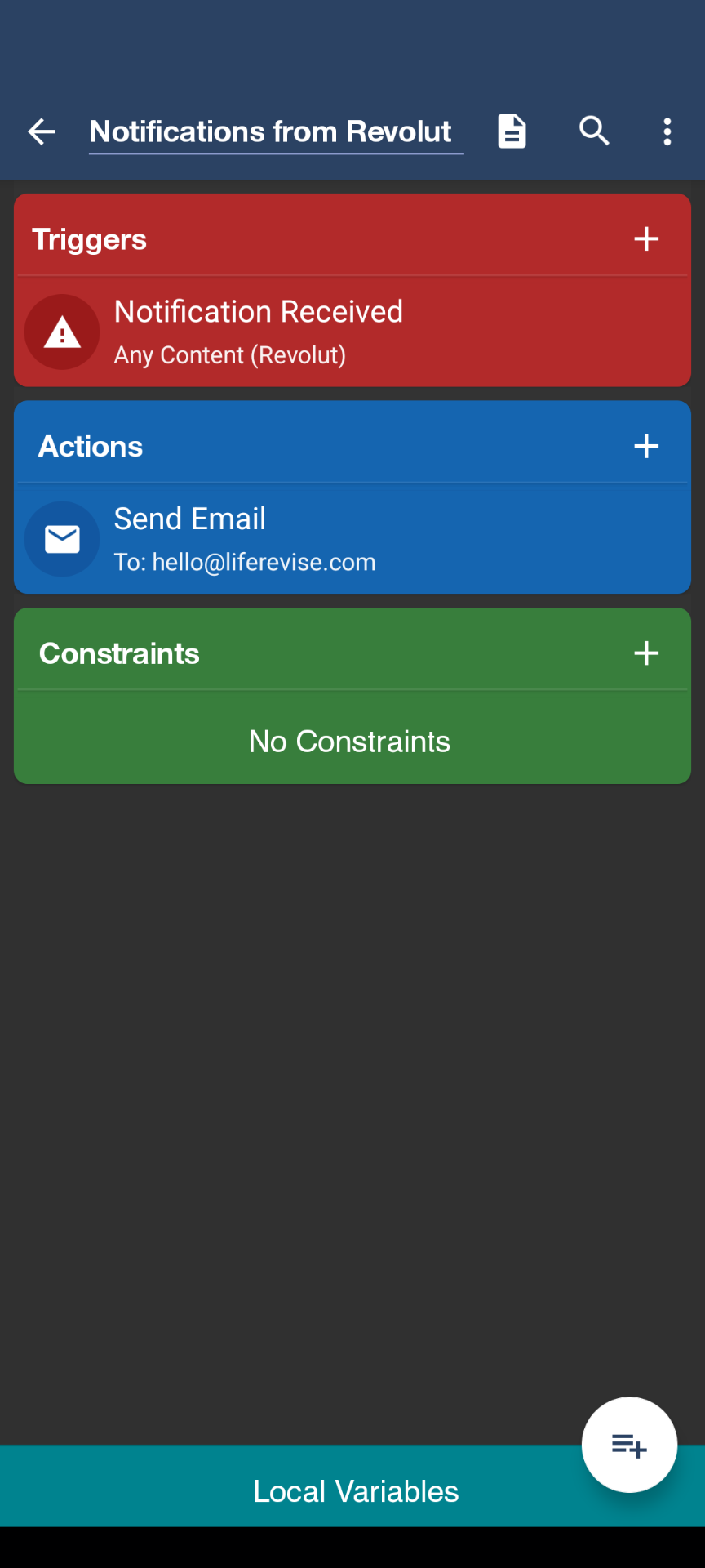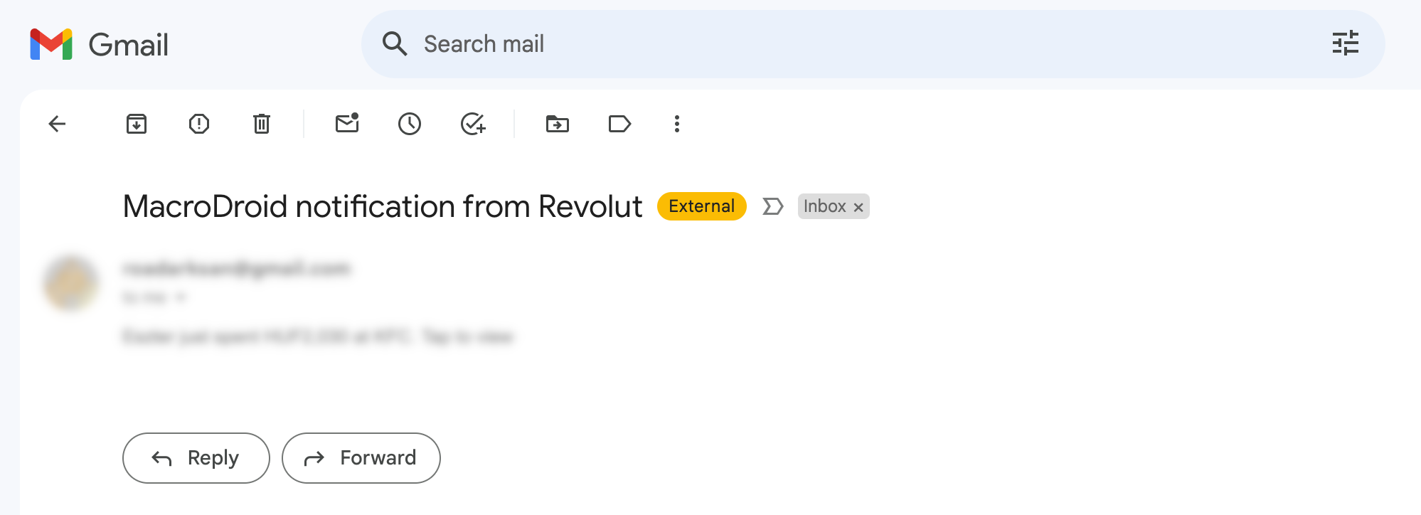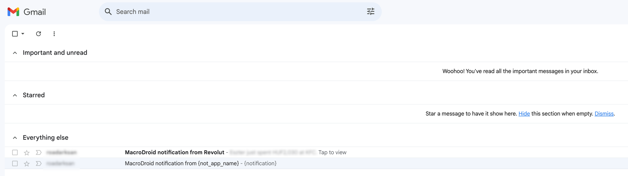 However, the second email I just received actually does contain the name, which is like "MacroDroid Notification from Revolut." Since there was a transaction on my Revolut account, I actually received an email with the proper message body.
