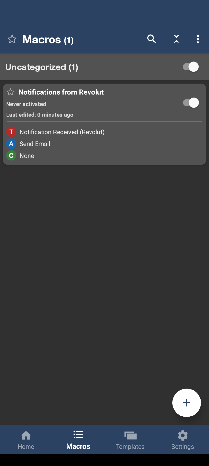 And here you go, you just created an automation macro. It hasn't run yet, so it says "never activated." However, while I was recording this video, I actually did a test run and also received a notification from Revolut.